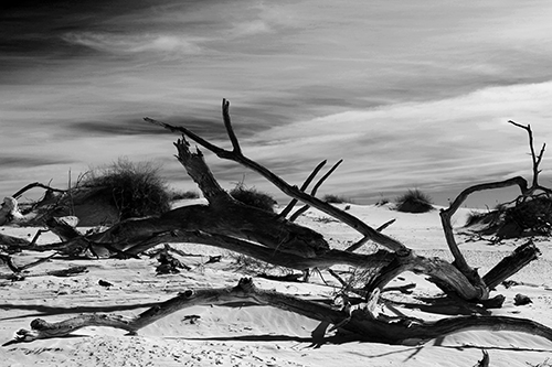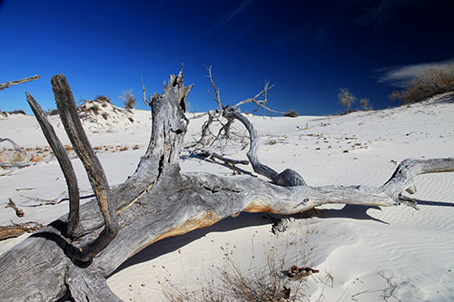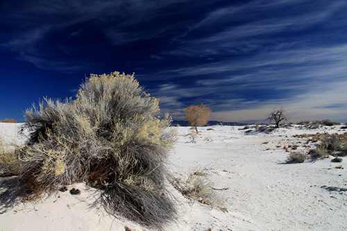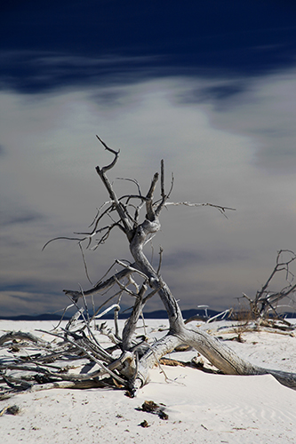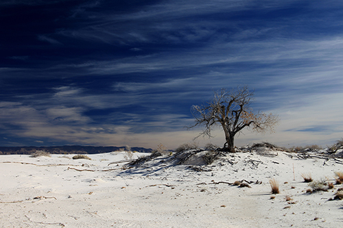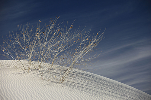 These photographs were taken at White Sands National Monument, in Southern New Mexico, over a period of several days in December. Oddly, this desert is in no way desolate, but rather awe inspiring, at the foot of the Rockies. The goal of these images is to bring out the power of the moving white sands, and the co-habitation which exists with life and beauty, within this apparently hostile world.