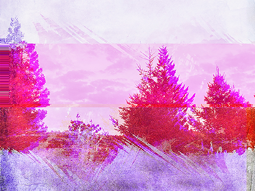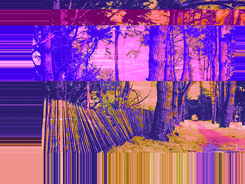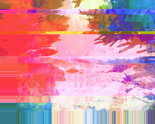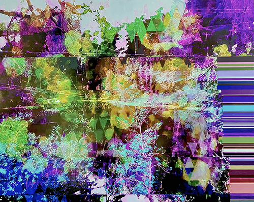 As a visual artist, how do I protest and express my dismay at the loss, the fracturing, the fragmenting, the dismantling, the absolute assault on natural resources? I use high-key, garish, multi-tonal colors that don’t follow the normal chromatic rules of the natural world. Oceans are pink, trees are red, lakes are electric green, skies have triangles, reflections are refracted. Paintings are cut, layered, and reassembled out of order with paint and photographic materials. Why? The human effects on landscapes and oceans speak to a fractured future for our landscapes which in my view is totally out of order.